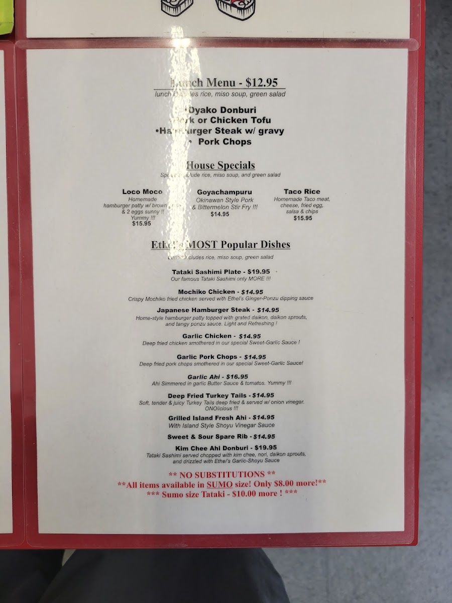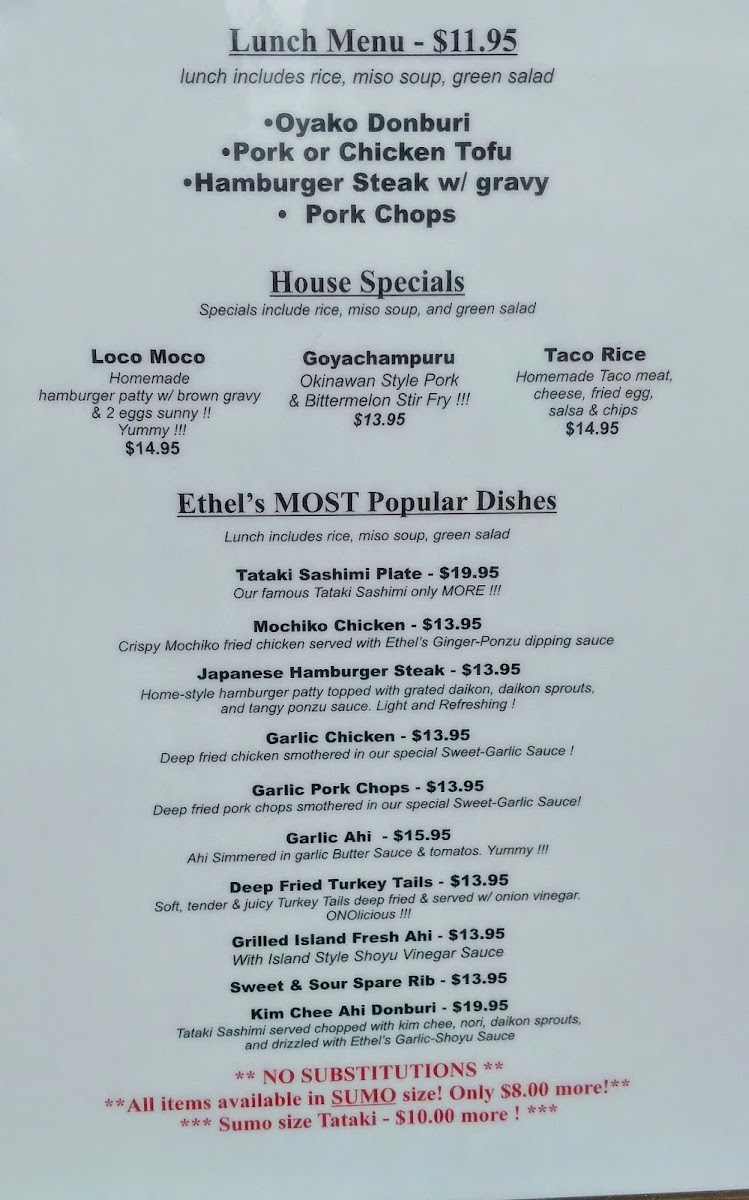 Even with a few parking challenges and a bit of a wait, the exquisite flavors and generous portions make it worth every minute. With rave reviews on their chicken katsu and Mochiko chicken, Ethel's Grill promises a delightful culinary experience!